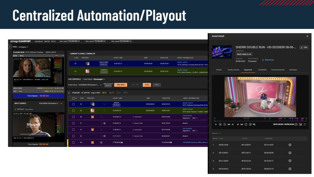 The cloud is nothing new—AWS, Microsoft Azure, and Google Cloud have been around for years, and broadcast technology can now modernize itself by leveraging cloud-based infrastructures. There are significant efficiency gains with a cloud-based playout. Previously, each station had to receive a file, transcode it, and ingest it into a playout system manually. Operators then had to mark the segment in/out points before adding the content to a playlist. Now, with cloud-based workflows, we transcode the file once, segment it once for all stations, and make it instantly available for playback—eliminating redundant processing. For example, a syndicated show like Jeopardy or Wheel of Fortune, which aired across multiple markets, previously required separate processing for each station. Cloud playout solves this inefficiency.