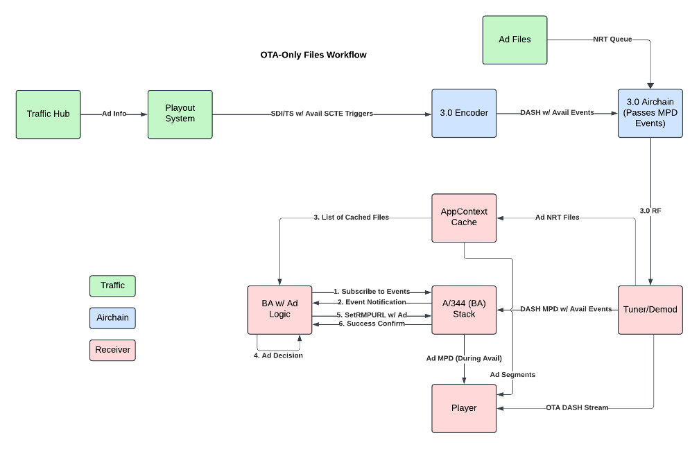 The ATSC 3.0 standard provides a few options for handling ad insertion. There are distinct pros and cons to each, and so it is important to match the correct solution to a given use case. This section will provide an overview of some of the potential systems that can be used. These cases will focus solely on ROUTE/DASH streams.